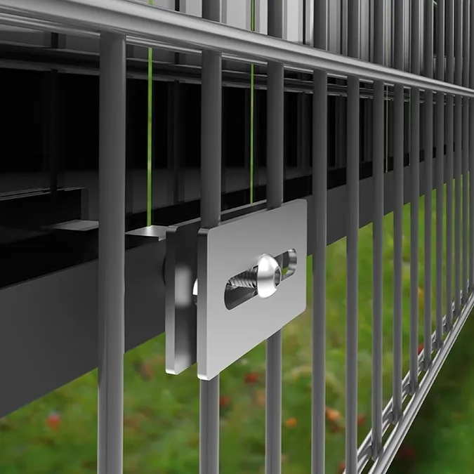 Für Zaunanlagen mit Doppelstabmatten 8/6/8 und 6/5/6, bieten wir Ihnen dieses elegante Montage-Set aus Edelstahl für PV-Module an. Das PV-Modul wird einfach und schnell in die Matte eingehangen und mit Schrauben gesichert. Die PV-Module können Sie horizontal als auch vertikal verbauen. Die Außenmaße der Doppelstabmatte geben die Größe der PV-Module vor.